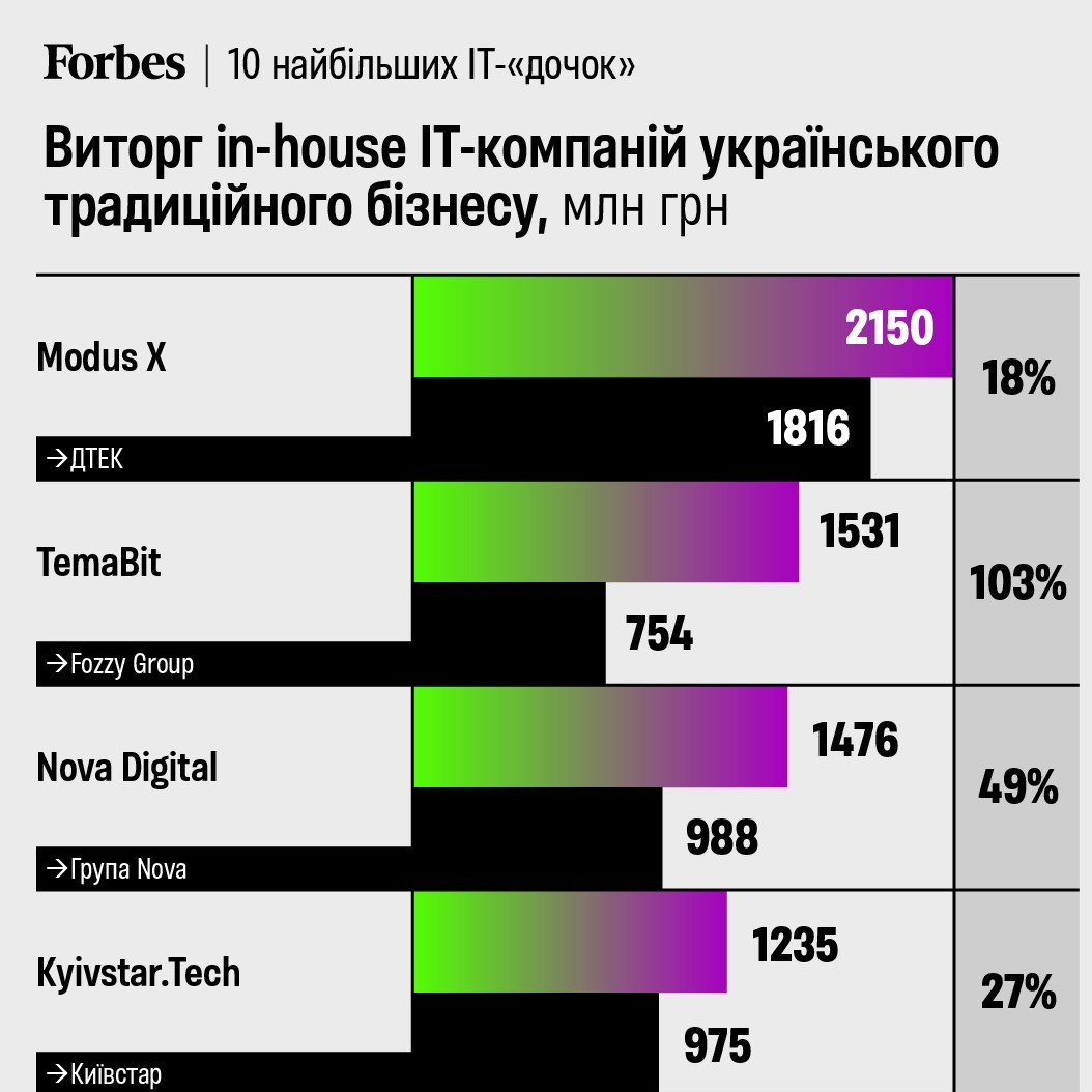 MODUS X вдруге поспіль посів перше місце в рейтингу IT-компаній, створених великим бізнесом, за версією Forbes Ukraine.