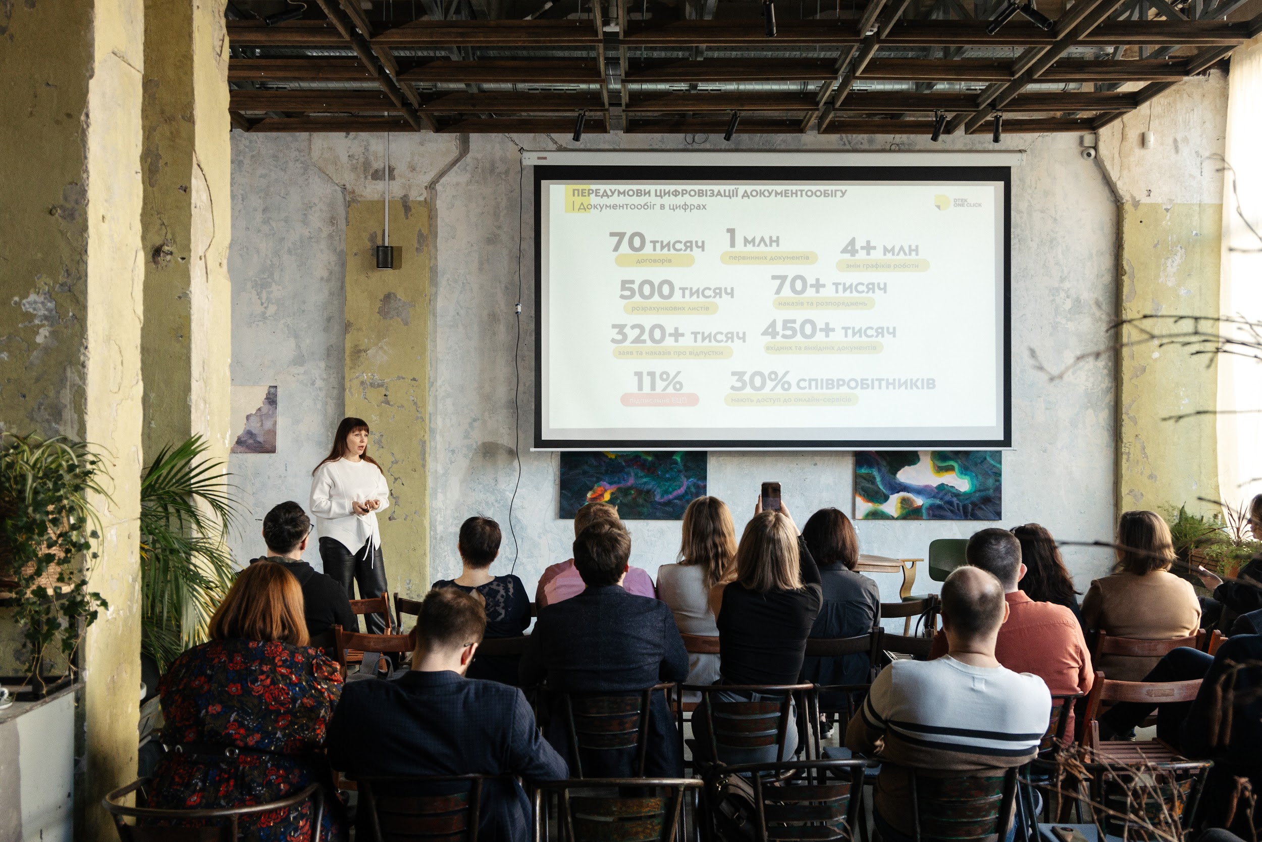 The key topic of the event was the experience of digitalization of document flow on the example of DTEK Group. Inna Butovska, DTEK One Click digitalization program manager, shared a practical case of a paperless office that is already in operation at the company. She spoke about the challenges the team faced during the implementation, as well as the results achieved by switching to digital processes.